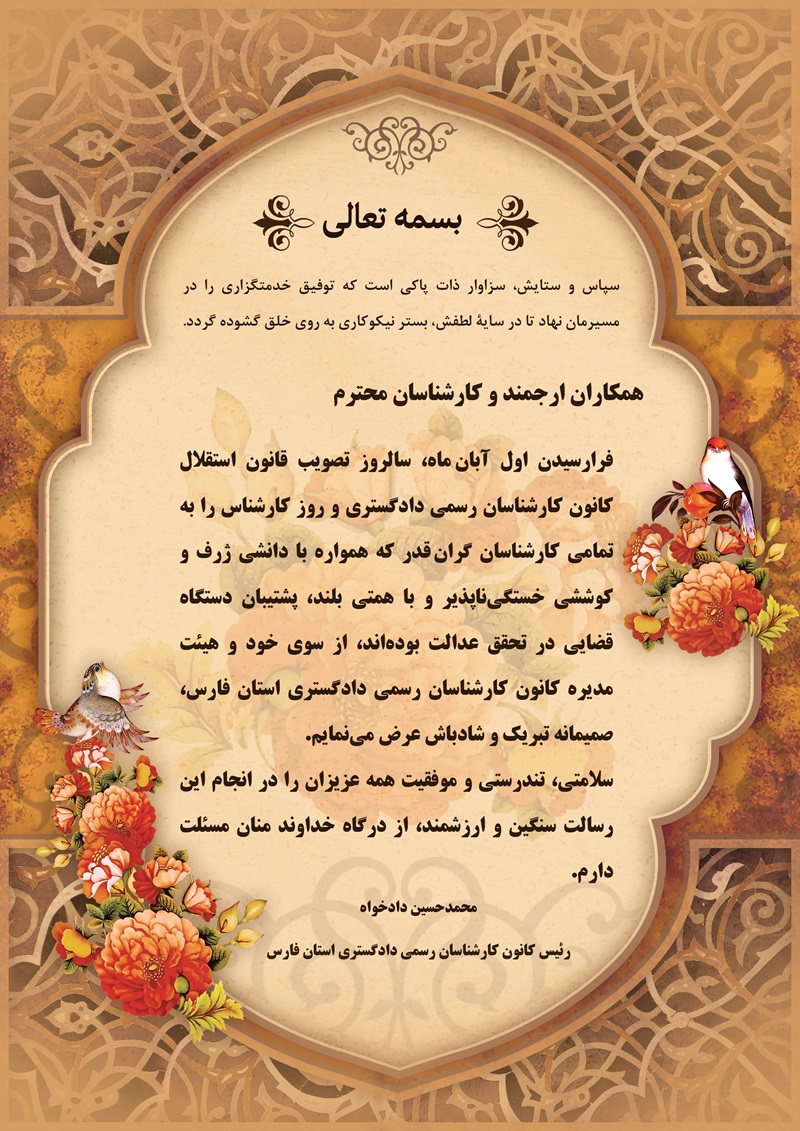 عنوان خبر: پیام تبریک ریاست کانون به مناسبت بزرگداشت روز کارشناس